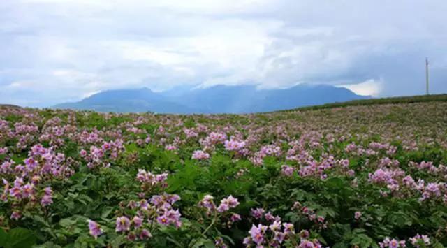 高低起伏的山坡上,开满了姹紫嫣红的洋芋花,