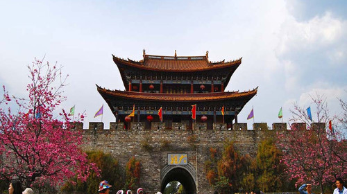 随后游览【大理古城】(60分钟)(不含大理古城古维费30元/人,不含大理古城电瓶车35元/人)大理古城又名叶榆城、紫禁城、中和镇。古城其历史可追溯至唐天宝年间,南诏王阁逻凤筑的羊苴咩城(今城之西三塔附近),为其新都。现在的古城始建于明洪武十五年(公元1382年),古城外有条护城河,古城四周有城墙,东、西、南、北各设一门,均有城楼,四角还有角楼。解放初,城墙均被拆毁,1982年,重修南城门,门头“大理”二字是集郭沫若书法而成。城内街道为典型的棋盘式布局,街巷间有一些老宅,也仍可寻昔日风貌,庭院里花木扶疏,鸟鸣声声,户外溪渠流水淙淙。“三家一眼井,一户几盆花”的景象依然。